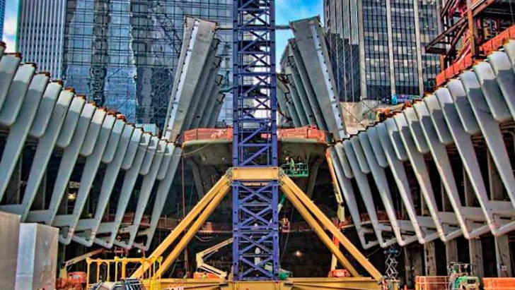 A obra, que custou US$ 4 milhões, vai demorar mais dois anos para ser concluída. A estrutura de 75 mil metros quadrados, chamada de Oculus, consiste em um edifício enorme, com costelas de mármore branco que se estendem para cima, como asas de pássaro. Quando o complexo estiver pronto, ele vai funcionar também como um novo centro comercial e cultural para a região de Lower Manhattan.