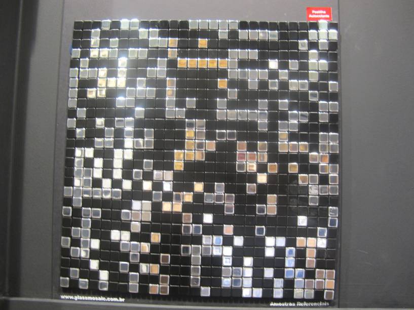 Inspirada no mundo da moda, a Colormix também trouxe novidades para a feira deste ano com a coleção Strauss. As pastilhas misturam materiais diferentes como vidro, inox, alumínio, mármore e cerâmica formando estampas interessantes. “As peças interagem com a luz. Então, dependendo do projeto de iluminação, elas podem refletir tons diferentes”, explica Humberto Grangeia, da Colormix.