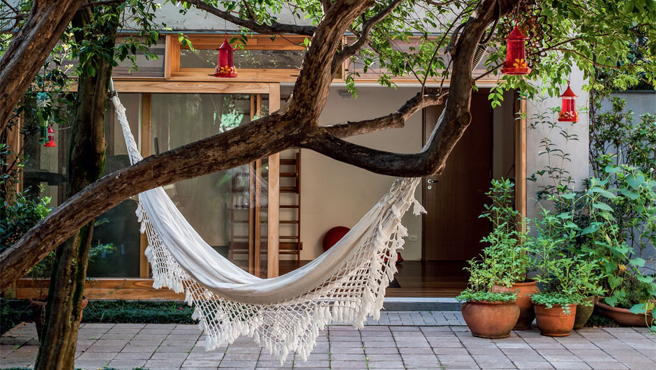 “Precisávamos cobrir uma grande área. A sugestão das placas drenantes veio da arquiteta Cristina Xavier, autora do projeto da casa. Foi a solução perfeita”, conta o morador, Sérgio Fontana dos Reis, que também é arquiteto e planejou o paisagismo de sua residência, em São Paulo. Quando chove, este tipo de piso retarda a passagem da água para a terra, que, assim, consegue absorvê-la melhor, diminuindo a quantidade enviada às galerias e, por tabela, reduzindo as enchentes. A escolha levou em conta mais dois critérios: a praticidade na manutenção (basta lavadora de pressão com jato-d’água inclinado a 30 graus) e o acabamento agradável ao toque – um convite a andar descalço.