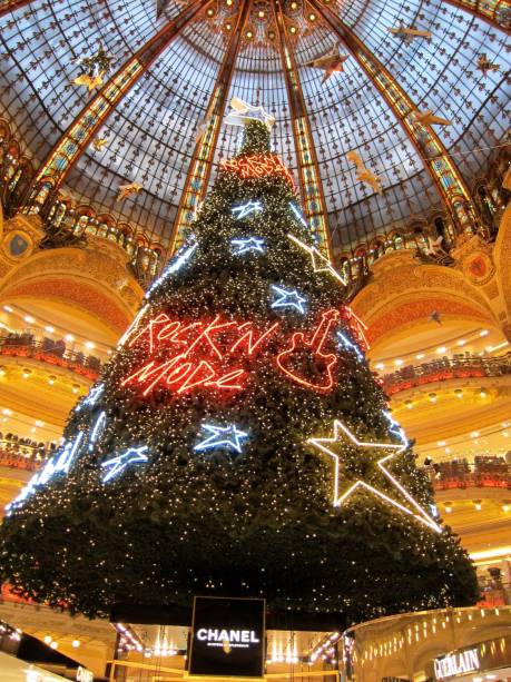 A tradicional loja parisiense sempre impressiona e encanta com as árvores de Natal extravagantes