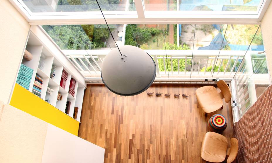 Para o décor, foi escolhida uma paleta de cores que combina tons naturais – como o da madeira – com cores mais fortes, como o amarelo e o azul.