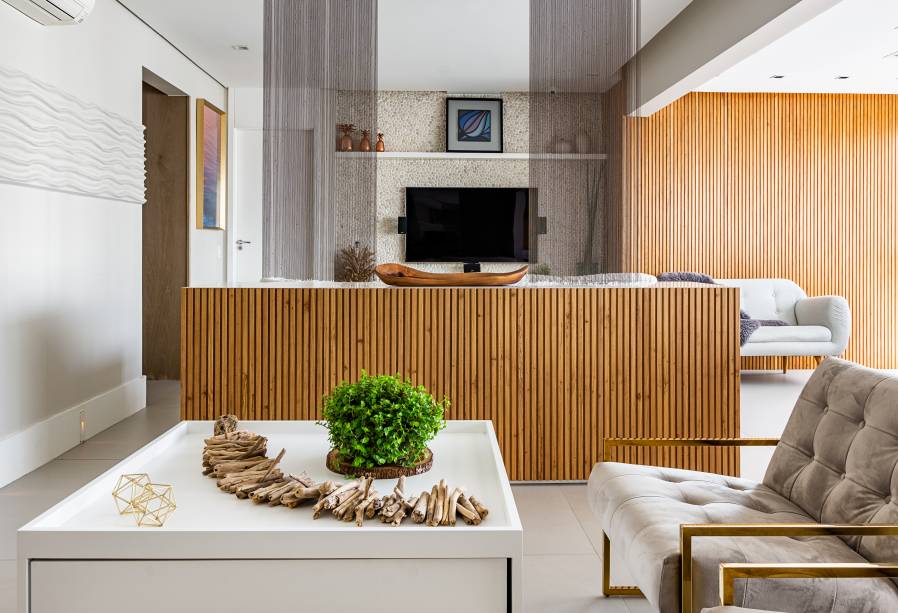 Apê moderno e atemporal acomoda várias funções em um só ambiente