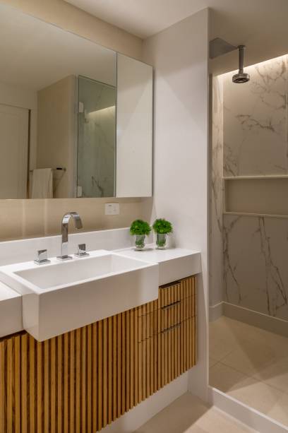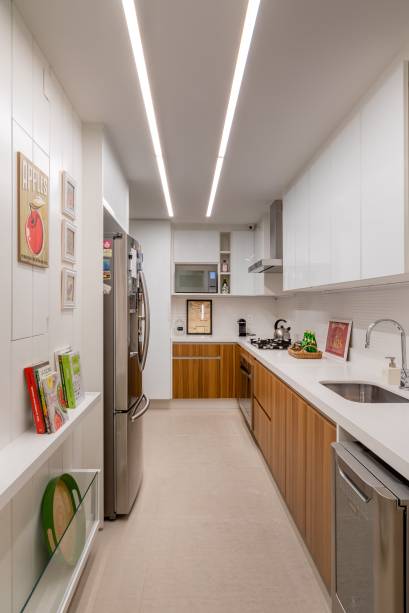 “O ponto alto deste projeto é a praticidade do apartamento. Seguimos à risca o programa de necessidades dos moradores, sempre agregando sugestões. O resultado é uma casa prática com uma decoração clean, mas ao mesmo tempo aconchegante”, contam as arquitetas.