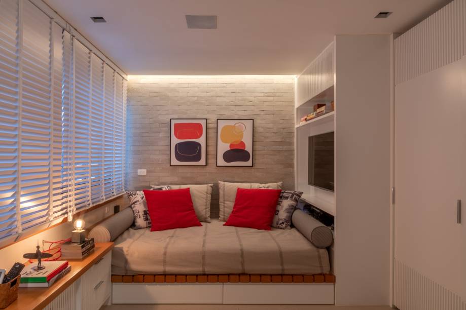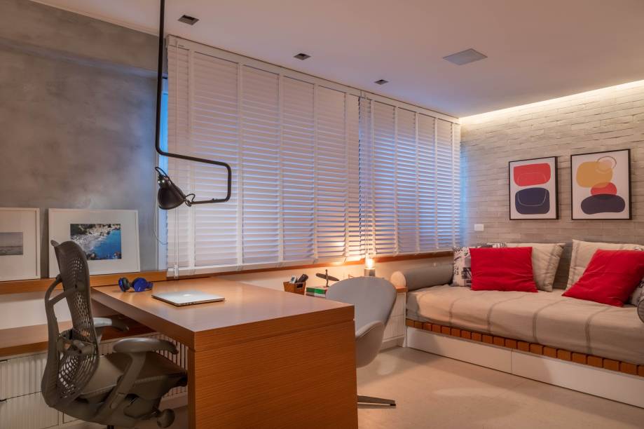 Além de clean, o décor é também leve e atemporal. Com uma paleta de cores neutra, ele abre espaço a itens de tons vibrantes, como quadros e almofadas.