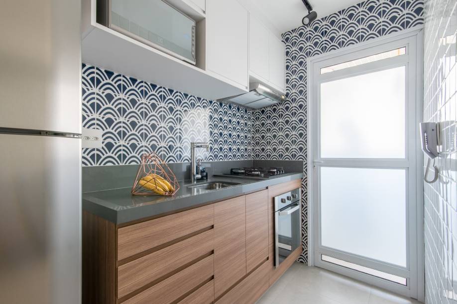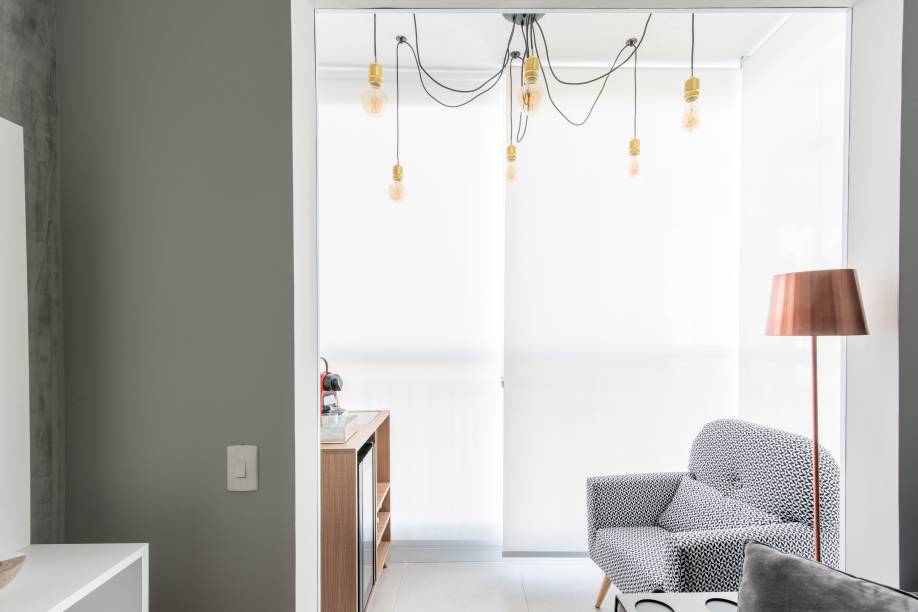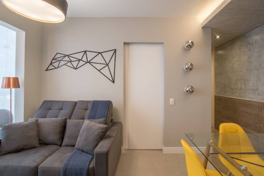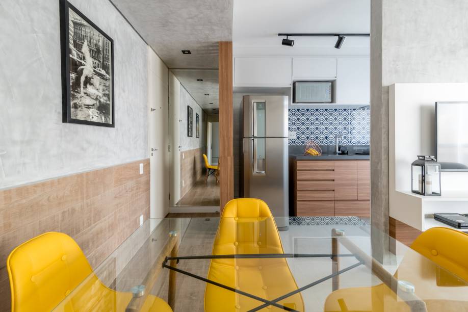 Para este apartamento de metragens reduzidas no Morumbi, em São Paulo, o Studio 19 Arquitetura elaborou um projeto com foco na integração dos ambientes, como sala, cozinha e varanda. Quando somados, os cômodos resultaram em um espaço amplo e agradável para receber as visitas.