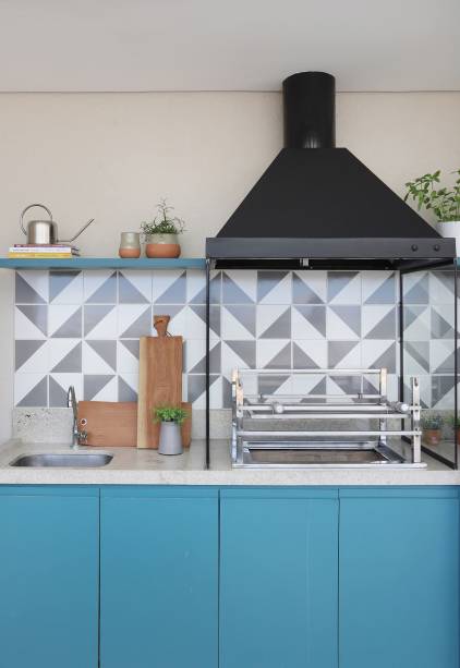 Comandado pelo escritório Studio Canto, o projeto partiu das cores vibrantes em detalhes e da geometria, começando pela cozinha, que recebeu o laranja pontual – um grande desejo da moradora.