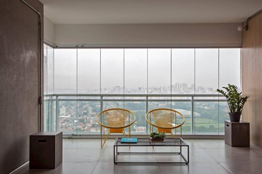 Com o desafio de prover ambientes confortáveis para acolher a dupla nos momentos de descanso e espaços amplos para receber amigos, os arquitetos investiram na ampliação da área social – que foi integrada à varanda do apartamento.