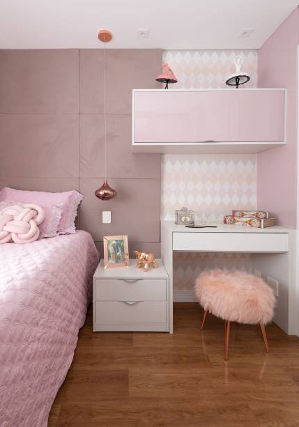 Outro ambiente também foi integrado: a suíte do casal se uniu à varanda do espaço, o que deu a possibilidade de criação de um escritório para os moradores.