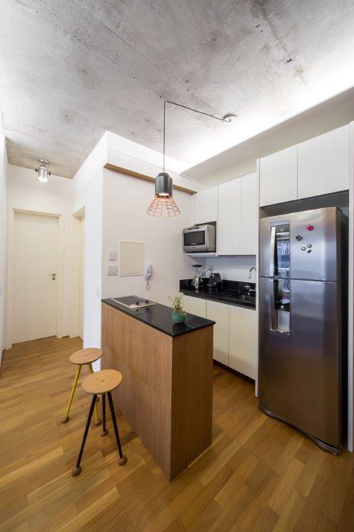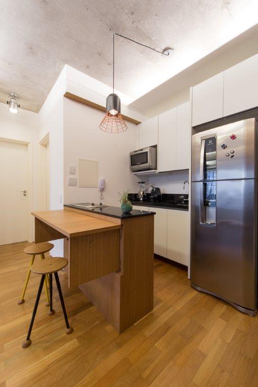 O morador buscava um espaço social integrado, em que pudesse, eventualmente, organizar festas para receber amigos e familiares. Com isto em mente, os arquitetos envolvidos planejaram uma marcenaria feita sob medida que “abraça” as pessoas para o espaço central livre – um ponto de convivência e interação.