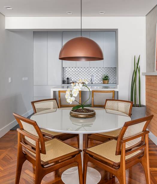 A arquiteta Suellen Figueiredo assumiu o desafio de projetar uma reforma para este apartamento de 130 m², no bairro de Perdizes, São Paulo. Pensado para um casal que desejava um espaço bonito e funcional, o imóvel deveria ter sua ênfase na área social e na churrasqueira.