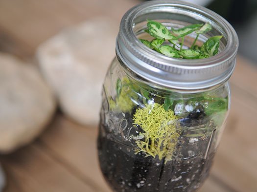 Para manter o equilíbrio da umidade, corte pedaços do musgo e pressione-os firmemente na base das mudas em seu terrário de solo.