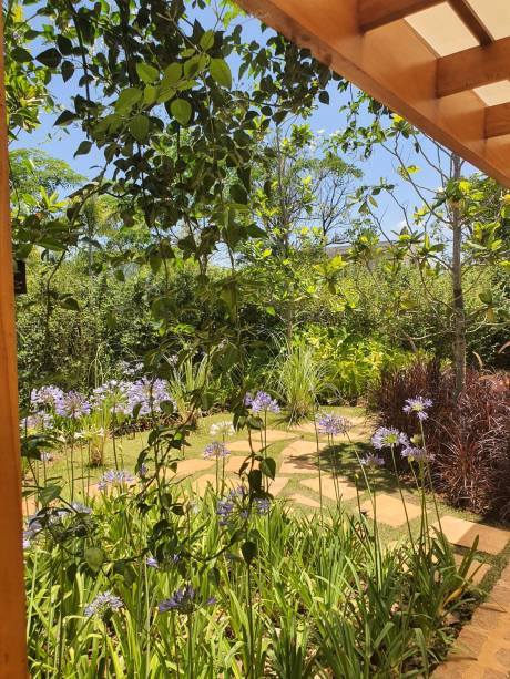Jardim de 1000 m² une plantas de estilo campestre com toques tropicais