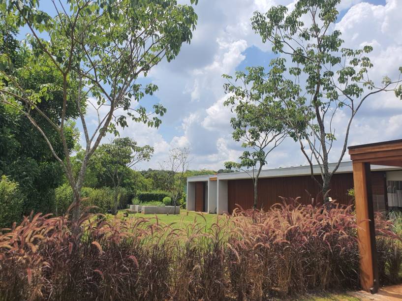 Desenvolvido em uma área de aproximadamente 1000 m², este projeto de paisagismo assinado por Alessandro Terracini se destaca pela fusão equilibrada entre elementos campestres e tropicais. Atendendo às necessidades do cliente, o jardim que complementa a residência oferece privacidade nas divisas sem perder a fluidez.