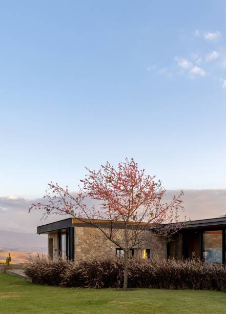 Priorizando a reintegração de árvores grandes e emblemáticas, o paisagismo conseguiu restaurar o microclima da região, enquanto os arbustos foram dispostos de maneira minimalista, destacando a arquitetura e a vista deslumbrante. A memória afetiva da família guiou a seleção de árvores, composta por frutíferas como a jabuticabeira, cerejeira e oliveira, e ornamentais, como Pau Mulato, Callistemon e Paineiras.