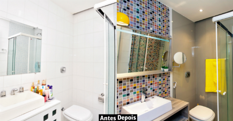 Há quem pense que, em áreas pequenas, paletas coloridas ou vibrantes não são bem-vindas e que a cor branca é sucesso garantido. Nada disso! Basta olhar as fotos deste banheiro para perceber que, antes, quando era quase monocromático, o cômodo estava sem graça, e que, após sua repaginação, ficou muito mais atraente. “Elegemos as pastilhas coloridas como o grande destaque do pedaço e as usamos pontualmente em duas faixas de cerca de 80 cm cada. Dessa forma, não pesou nem no orçamento nem na aparência do local”, explica Ricardo.