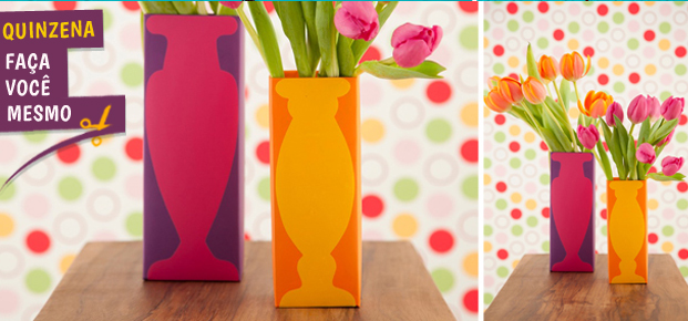 Dessa vez, Samir trouxe uma dica de reaproveitamento de materiais. Para fazer esses vasos, você precisa de: caixas de suco vazias, plástico adesivo (do tipo Plasticover) de cores contrastantes, tesoura. Corte a parte superior da caixa, lave bem, encape com plástico adesivo. Corte a silueta do vaso (baixe aqui o PDF com o molde) no plástico adesivo da outra cor. Depois, cole. Simples assim. E a dica do Samir é: vá tirando a película do plástico bem lentamente e alisando a base para tirar eventuais bolhas de ar.