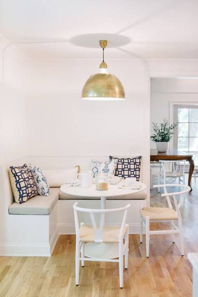 Na hora de decorar, o estilo rústico se encaixa bem com esse móvel, no entanto, um canto alemão moderno vai funcionar super bem com a sua casa, pois ele é muito versátil. Uma boa pedida também é um pendente sobre a mesa de jantar do canto alemão.
