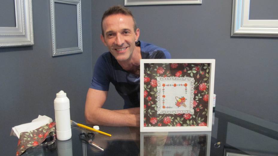 O artesão Marcelo Darghan ensina passo a passo para fazer um quadro com imagens de recordações.