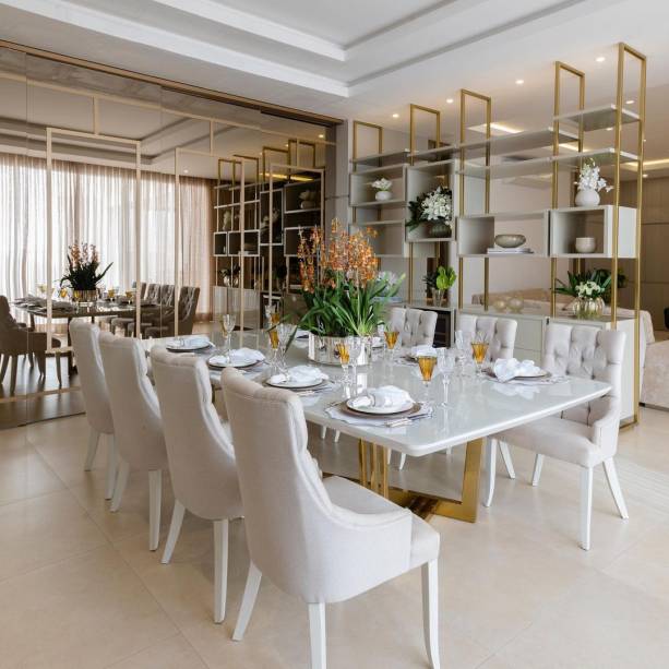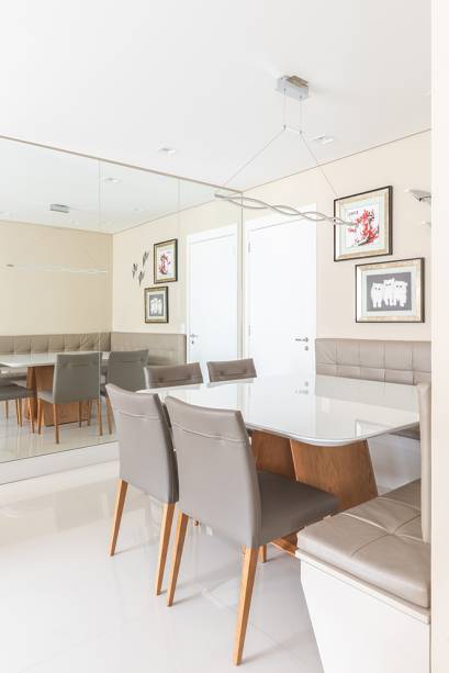 O item tem a função de duplicar tudo que tem no cômodo, inclusive lustres, pendentes e paredes coloridas. “Quando colocamos um espelho em uma sala de jantar com lustre ornamental, por exemplo, podemos deixar o espaço poluído demais e comprometer a visibilidade”, explica a arquiteta Paula Carvalho.