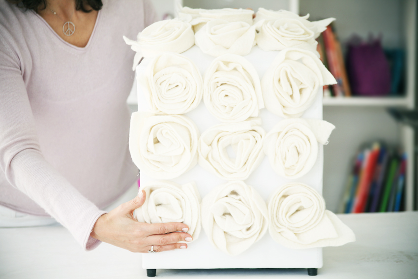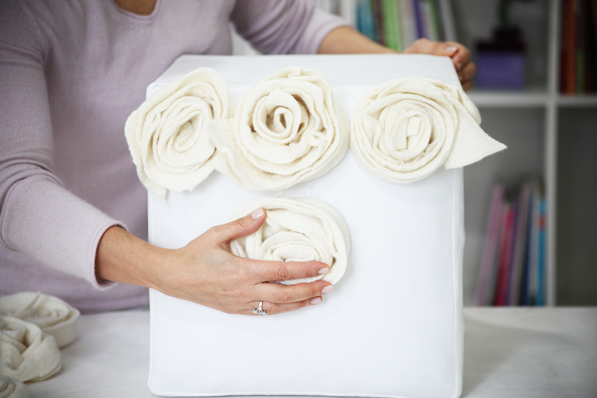 Faça você mesmo: customize seu pufe com incríveis flores de feltro