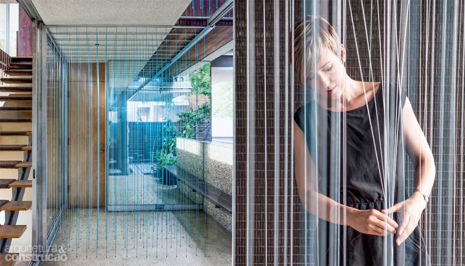 Acostumado a usar a cidade como superfície para suas criações, o artista de rua americano Hottea fez poesia ao amarrar fios coloridos à ponte que liga Manhattan ao Brooklyn, em Nova York. Tão simples, a ideia ajudou a suavizar o trajeto entre ilha e continente. Na VDL House, ação semelhante reviu a transparência radical imaginada pelo arquiteto Richard Neutra 75 anos atrás. As fronteiras inexatas entre interior e exterior foram refeitas por cordas de cetim presas em esquadrias de alumínio fxadas no teto. “Um truque espacial”, disse a artista Bryony Roberts, autora da intervenção. O artifício aparece também em menor escala: da poltrona macia, capaz de acolher o corpo, a uma divisória que quebra a noção de profundidade. Sem falar em roupas, claro.