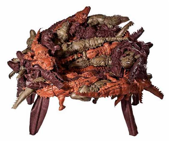 Depois de Londres, agora New York. Para lançar mais uma coleção, das inúmeras que já fazem parte da vasta criação, a dupla é o destaque da exposição Irmãos Campana: Conceitos, na galeria Friedman Benda. A mostra vai até o dia 3 de julho (abriu no dia 5 de junho) e traz um novo trabalho: o armário Pirarucu, feito de pele desse maior peixe de água doce do mundo, que é pescado de forma sustentável nas águas do norte. Na coleção, outros destaques, como as peças estofadas Boca, a Raquete, uma coleção de cadeiras e telas feitas a partir de barras de latão dobrado com fios de nylon usados para o assento e o encosto, além da série Fitas, que consiste em um buffet, armário e mesa com superfícies preenchidas com tiras em espiral de aço dobrado. Na exposição está ainda o sofá e a cadeira de jacarés de pelúcia feita pela Orientavida, a cadeira Detonado, de aço inoxidável revestida com um patchwork de vime e, por fim, as pedras de ametista fixadas em superfícies de vidro da coleção Ametista. As principais peças da exposição Campana Brothers: Concepts, você confere abaixo.