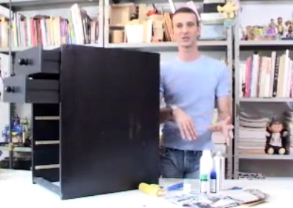 Um gaveteiro revestido de Mangá e jornal japonês.