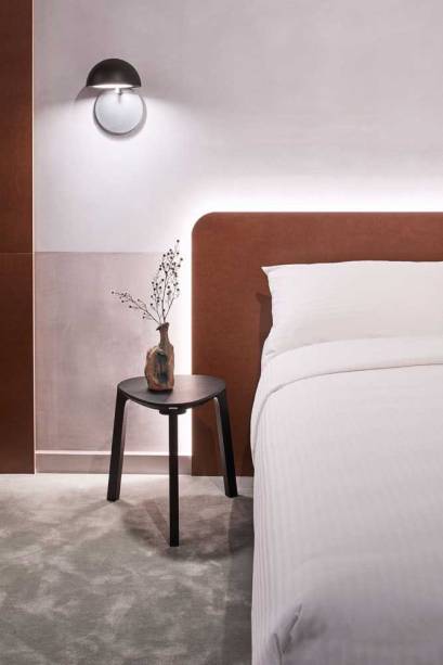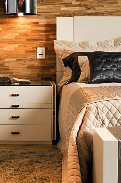 Para facilitar a rotina, o eixo da tomada deve ser alocado ao lado da mesa de cabeceira, a 85 cm do piso. Também é interessante manter um espaço de 60 cm entre as laterais da cama e as paredes, para melhorar a circulação.