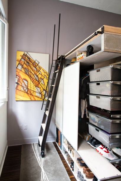 Quando o casal de designers Charles Irby e Peter Suen se mudou para São Francisco, nos Estados Unidos, precisou de muita criatividade para se adaptar aos 46m² da nova morada. A saída foi investir em soluções de design que otimizassem os espaços e em móveis multifuncionais. O resultado é uma quitinete com dois andares. No superior, a dupla projetou uma cama; embaixo, o mobiliário assume diferentes papéis conforme a necessidade: o guarda-roupa se abre e transforma-se em uma mesa de estudos; a parede vira uma lousa para recados e, quando não é lousa, pode ser aberta e dar origem a outra cama; a escada que leva ao andar acima apoia-se em uma estrutura, uma espécie de armário, que guarda sapatos e roupas dos moradores (tudo em ordem com caixas e organizadores próprios, para fazer render ainda mais os poucos metros disponíveis). Ficou curioso e quer conhecer melhor o ambiente? Confira nesta galeria e veja as soluções encontradas pelo casal para otimizar o espaço.