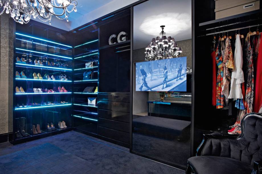Elegante e minimalista: apê tem linhas curvas, madeira clara e closet aberto