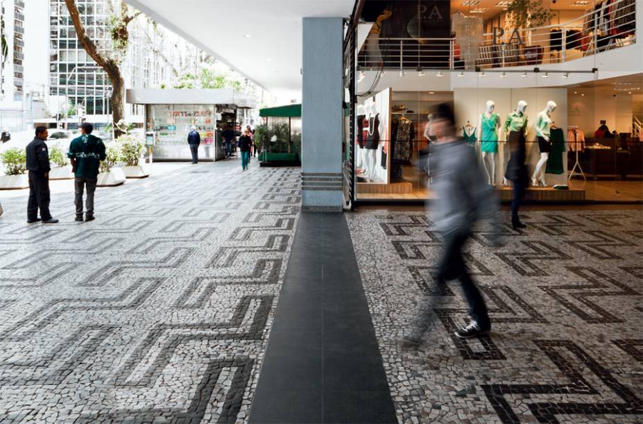 Não à toa o edifício o impressionou desde cedo. O Conjunto Nacional já nasceu vanguardista. “É um desenho muito feliz, atemporal”, pondera o conceituado profissional. “Daqui a 200 anos ele ainda será moderno porque tem condições de absorver os novos usos que a sociedade apresenta.” Não é nenhum exagero se pensarmos que o complexo já atravessou quase seis décadas de vida sem perder um de seus principais atributos: os espaços de uso coletivo. Interligadas às largas calçadas de mosaico português das ruas Augusta e Padre João Manoel, da alameda Santos e da avenida Paulista, suas generosas galerias abertas, no térreo, são uma extensão da vida lá fora. Ou, em outros termos, o prolongamento do tecido urbano para dentro do edifício.