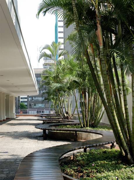 Diariamente, cerca de 45 mil pessoas (entre população fixa e flutuante) circulam pelos 1,6 mil m² de corredores. Buscam encurtar o percurso, acessar algum de seus múltiplos espaços comerciais ou simplesmente chegar em casa, no bloco residencial, que reúne 47 apartamentos. “Criei uma minicidade”, graceja o autor do projeto. Pudera: todos os números do endereço são superlativos. De tão cobiçado, possui fila de espera para compra ou locação de algum dos imóveis distribuídos nos 111 mil m² de área construída. Ali, os moradores dividem espaço com lojas, consultórios, farmácias, bancos, escritórios, livrarias, cinemas, teatro, restaurantes, academia de ginástica, bancos e até consulados. O lugar quase não para. Só a ala comercial e de serviço funciona das 7 às 23h. É justamente esse vaivém, que o mantém acordado praticamente 24 horas por dia, um dos motivos de tanta admiração. Afinal, onde tem vida, não tem degradação. A essa máxima soma-se outra virtude – o adensamento otimiza a infraestrutura e, na ponta do lápis, traz economia. Aliado à democratização do espaço, torna-se solução imbatível. “Ao tratar bem as pessoas e os recursos, o edifício aponta uma saída para São Paulo”, prega o arquiteto Marcos Acayaba, que o usa como exemplo a seus alunos da Faculdade de Arquitetura e Urbanismo da Universidade de São Paulo (FAU-USP). “Ao contrário de prédios com guaritas, a prefeitura deveria estimular empreendimentos de uso misto, onde o comércio franqueia o espaço público, permitindo a esses projetos o aumento da área construída.”