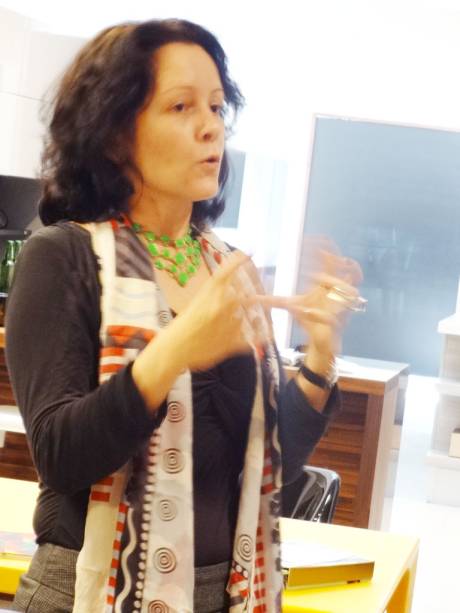 A convite da Favo Móveis e da Mont Blac Mármores, profissionais apreciam as obras de Yayoi no Instituto Tomie Ohtake