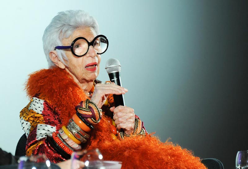 Iris Apfel é reverenciada por estilistas, fashionistas e designers. O seu estilo autêntico lhe rendeu o título de uma das cinquenta mulheres mais bem vestidas – na categoria acima de 50 anos – pelo jornal The Guardian. Mas a sua fama se deve a uma longa carreira que desenvolveu no universo da moda e da decoração. Ela iniciou sua trajetória como copy girl no jornal Women´s Wear Daily. Casou-se, em 1948, com Carl Apfel, com quem fundou a tecelagem Old World Weavers, onde trabalhou até sua aposentadoria, em 1992. Como decoradora, atuou na Casa Branca durante os mandatos de nove presidentes: Truman, Eisenhower, Nixon, Kennedy, Johnson, Carter, Reagan e Clinton. Iris também tem seu próprio livro – “Rare Bird of Fashion: The Irreverent Iris Apfel” publicado em 2007 – e linha de maquiagem, lançada em parceria com a MAC em 2011.