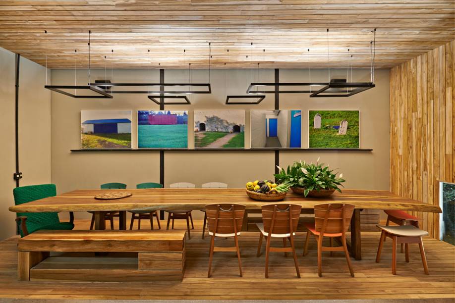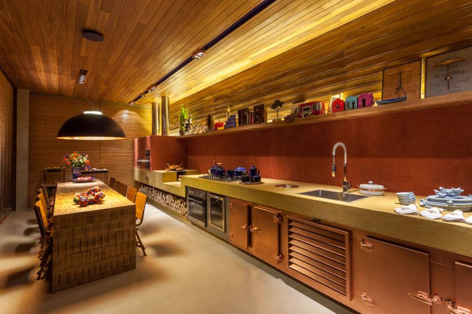Reforma separa cozinha de estar e cria varanda gourmet com mesa de 3 m e 200 kg