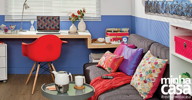Sala multifuncional de 8 m² é sala de TV, home office e quarto de hóspedes